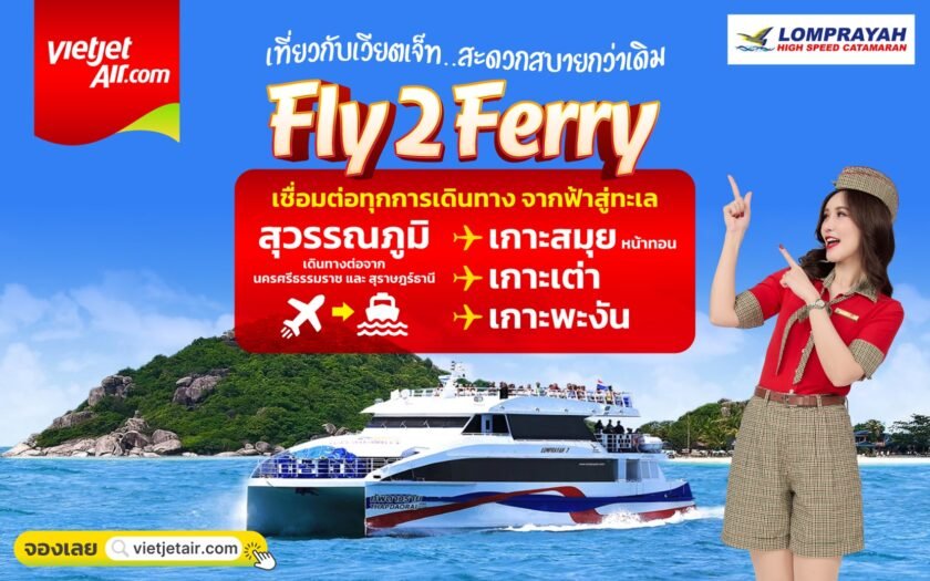 เวียตเจ็ทไทยแลนด์ เปิดตัวบริการเสริม “Fly2Ferry” เชื่อมต่อการเดินทางทางอากาศและทางทะเลในระบบการจองเดียว เพื่ออำนวยความสะดวกสำหรับการเดินทางสู่เกาะทางตอนใต้ของประเทศไทย ในเส้นทาง กรุงเทพฯ (สุวรรณภูมิ) – เกาะสมุยกรุงเทพฯ (สุวรรณภูมิ) – เกาะเต่า และ กรุงเทพฯ (สุวรรณภูมิ) – เกาะพะงัน ได้อย่างสะดวก รวดเร็ว และมีประสิทธิภาพ ผู้โดยสารสามารถสำรองบัตรโดยสารและเดินทางด้วยบริการเสริม Fly2Ferry ตั้งแต่วันนี้เป็นต้นไป