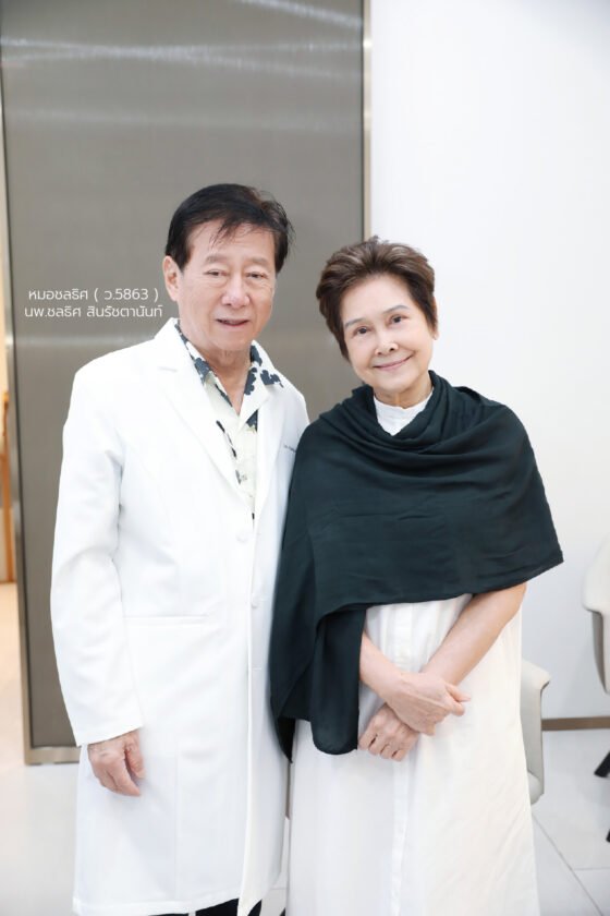 แม่ปุ๊ ปิยะมาศ เปิดใจถึงเหตุผลที่เพิ่งตัดสินใจทำหน้าครั้งแรกในวัยเลข 7 ว่า “เป็นคนกลัวเข็ม กลัวการผ่าตัดและผิวเป็นรอยช้ำง่ายมาก จึงไม่เคยทำศัลยกรรมมาก่อน แต่ด้วยตัวเลขอายุที่เพิ่มขึ้นก็เริ่มหาข้อมูลจนมาจบที่คุณหมอชลธิศ ศัลยแพทย์แถวหน้าของประเทศที่มีประสบการณ์ ความเชี่ยวชาญ ความน่าเชื่อถือ และคิดค้นนวัตกรรมใหม่ๆ เพื่อผลลัพธ์ที่ดีในการดูแลความงามมาตลอด ซึ่งก่อนตัดสินใจทำก็คุยกับคุณหมอนานถึง 3 ปีเลยทีเดียว ทั้งข้อกังวลต่างๆ ปัญหาผิวพรรณ ร่องแก้ม หนังตาที่หย่อนคล้อย ริ้วรอยตามวัย รวมถึงเมื่อทำแล้วอยากให้ดูอ่อนเยาว์และเป็นธรรมชาติไม่แตกต่างจากเดิม คุยมานานจนมั่นใจ”