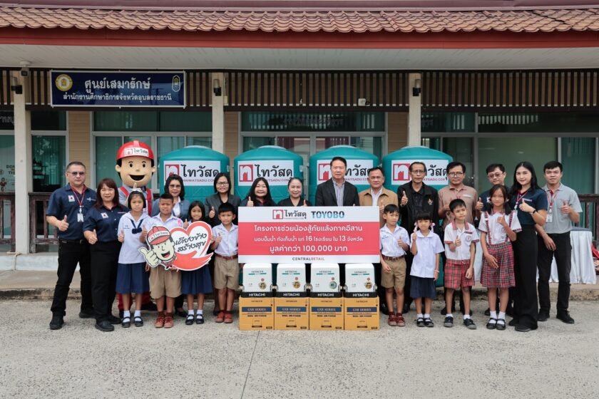 ไทวัสดุผู้นำธุรกิจค้าปลีกวัสดุก่อสร้างและสินค้าตกแต่งบ้านภายใต้บริษัทซีอาร์ซีไทวัสดุจำกัดในเครือเซ็นทรัลรีเทล เดินหน้าพันธกิจเพื่อสังคม จับมือพันธมิตร บริษัทโตโยโบ (ประเทศไทย) จำกัด ผู้จัดจำหน่ายปั๊มน้ำอัตโนมัติฮิตาชิ (Hitachi) อย่างเป็นทางการ ลงพื้นที่ส่งมอบปั๊มน้ำและถังเก็บน้ำมาตรฐาน ภายใต้โครงการ “ช่วยน้องสู้ภัยแล้งภาคอีสาน” เพื่อช่วยเหลือโรงเรียนในพื้นที่ห่างไกลและประสบปัญหาภัยแล้งในพื้นที่ภาคตะวันออกเฉียงเหนือ และยกระดับการเข้าถึงน้ำใช้ที่เพียงพอ โดยได้ดำเนินการบริจาคปั๊มน้ำ และถังเก็บน้ำมาตรฐาน ให้แก่ 16 โรงเรียนในภาคตะวันออกเฉียงเหนือ ครอบคลุมพื้นที่ 13 จังหวัด มูลค่ารวมกว่า 100,000 บาท ทั้งนี้ ในพิธีมีคณะผู้บริหารเข้าร่วมงาน ได้แก่ นายเดชา จงสถาพงษ์พันธ์ กรรมการ บริษัท โตโยโบ (ประเทศไทย) จำกัด พร้อมด้วย นางสาวอุทัยวรรณ พรหมเดเวช ผู้อำนวยการฝ่ายสื่อสารการตลาดและประชาสัมพันธ์ บริษัท ซีอาร์ซี ไทวัสดุ จำกัด ในเครือเซ็นทรัล รีเทล ร่วมมอบการสนับสนุนโดยมี นางอัจฉรียา ชุมนุม รองศึกษาธิการจังหวัดอุบลราชธานี ตัวแทนหน่วยงานภาครัฐและโรงเรียนในพื้นที่เป็นผู้รับมอบ