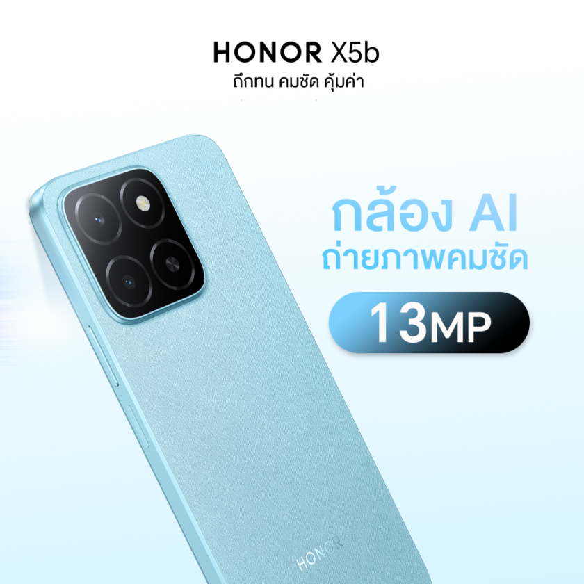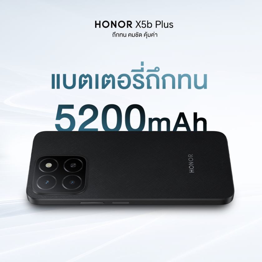 ออเนอร์ (HONOR) ผู้ให้บริการอุปกรณ์อัจฉริยะชั้นนำระดับโลกเปิดตัว HONOR X5b Plus สมาร์ตโฟนรุ่นใหม่ ภายใต้คอนเซ็ปต์ “ถึกทนคมชัดคุ้มค่า” ที่ตอบโจทย์ทุกการใช้งาน จัดเต็มด้วยฟีเจอร์ AI อัจฉริยะ ใช้งานง่ายและคุ้มค่ากว่าที่เคย โดยรุ่นนี้โดดเด่นด้วยกล้อง AI คมชัด 50MP เก็บทุกโมเมนต์ได้อย่างคมชัด พร้อมใช้งานยาวนานด้วยแบตเตอรี่ความจุ 5200mAh การันตีอายุการใช้งาน 4 ปี ผสานกับพื้นที่เก็บข้อมูลขนาดใหญ่จุใจ 4GB+128GB ขยายเพิ่มได้ถึง 8GB ด้วยเทคโนโลยี HONOR RAM Turbo ทำให้การจัดเก็บข้อมูลทำได้แบบเต็มพิกัด เป็นเจ้าของ HONOR X5b Plus ในราคาคุ้มค่าเพียง 3,299 บาท เริ่มจำหน่ายวันแรกตั้งแต่วันที่ 7 มีนาคม 2568 เป็นต้นไป