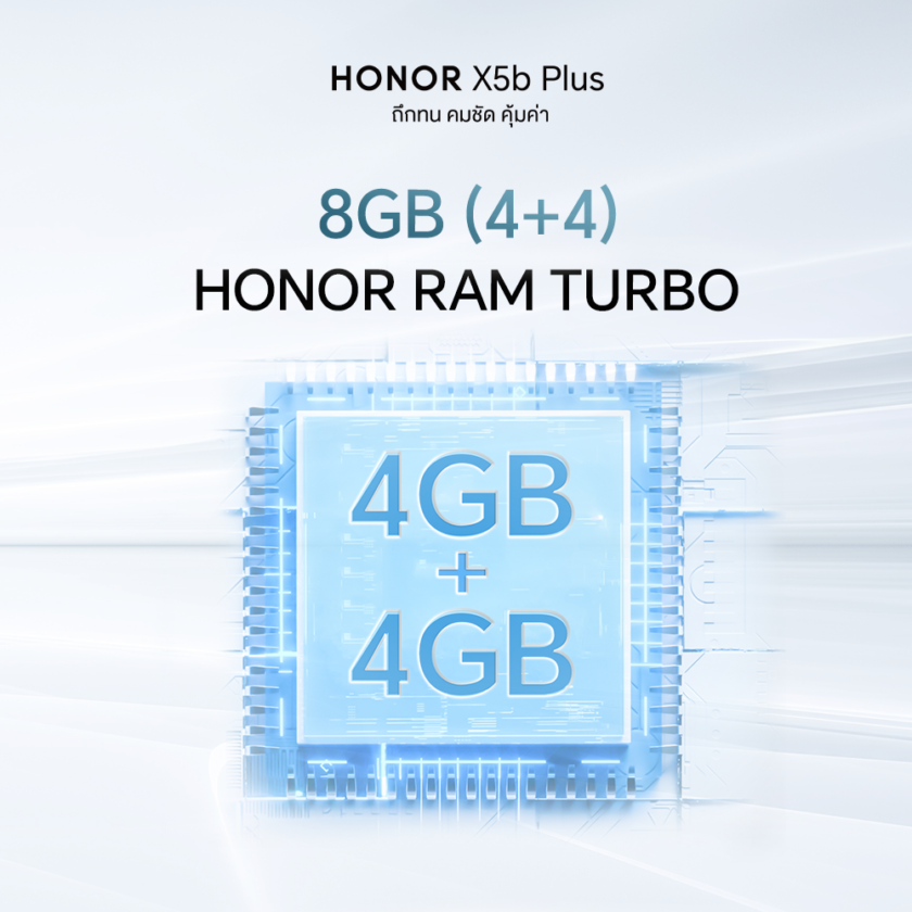 สำหรับ HONOR X5b Plus มาพร้อมพื้นที่จัดเก็บข้อมูลขนาดใหญ่ถึง 8GB (4GB+4GB)+128GB รองรับทุกความต้องการด้านความบันเทิงและการใช้งาน และช่วยให้คุณเก็บทุกความทรงจำและคอนเทนต์โปรดไว้ใกล้ตัวได้อย่างง่ายดาย