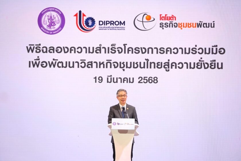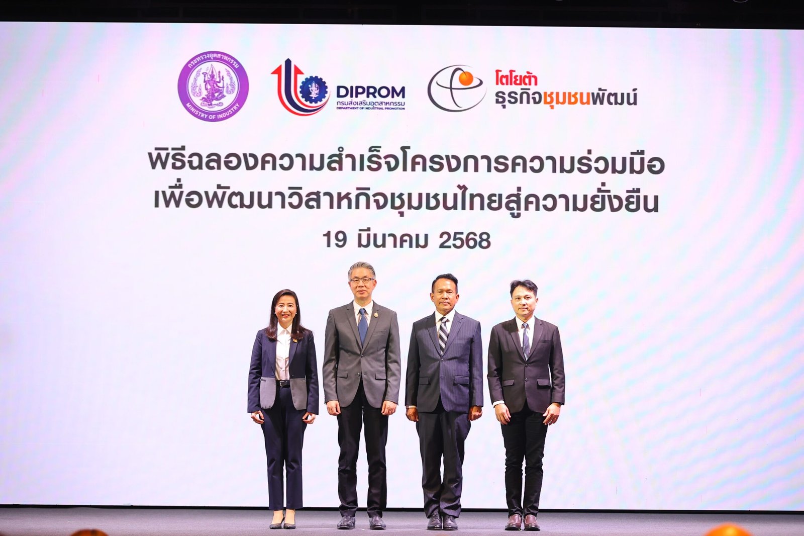ดร. ณัฐพล รังสิตพล ปลัดกระทรวงอุตสาหกรรม นางสาวณัฏฐิญา เนตยสุภา อธิบดีกรมส่งเสริมอุตสาหกรรม นายสุรภูมิ อุดมวงศ์ รองกรรมการผู้จัดการใหญ่ บริษัท โตโยต้า มอเตอร์ ประเทศไทย จำกัด พร้อมด้วยคณะเจ้าหน้าที่จากกรมส่งเสริมอุตสาหกรรมและคณะผู้บริหารระดับสูงบริษัทโตโยต้ามอเตอร์ ประเทศไทยจำกัดร่วมเป็นเกียรติภายในงานฉลองความสำเร็จโครงการความร่วมมือเพื่อพัฒนาวิสาหกิจชุมชนไทยสู่ความยั่งยืนณ TOYOTA ALIVE เมื่อวันพุธที่ 19 มีนาคม 2568 ที่ผ่านมา
