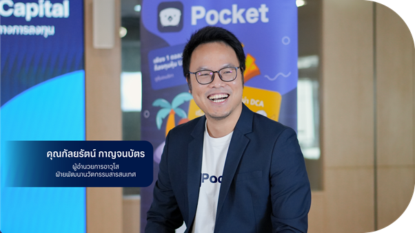 นอกจากนี้แอป Pocket ยังมีฟังก์ชันที่ครอบคลุมทั้งการวางแผนจำลองก่อนลงทุน และฟีเจอร์การซื้อขายที่ยืดหยุ่นและสะดวกสบาย พร้อมระบบบริการหลังบ้านที่ช่วยดูแลลูกค้าอย่างมีประสิทธิภาพ เพื่อให้คนไทยมีพฤติกรรมการออม การลงทุนในตลาดทุนเพิ่มมากขึ้น ตอบโจทย์การวางแผนการเงินของนักลงทุนทุกรุ่น แอปฯ Pocket นี้จะทำให้การออมและลงทุนเป็นเรื่องง่าย สะดวก ปลอดภัย และสามารถเข้าถึงกลุ่มคนในยุคปัจจุบันได้มากยิ่งขึ้น”