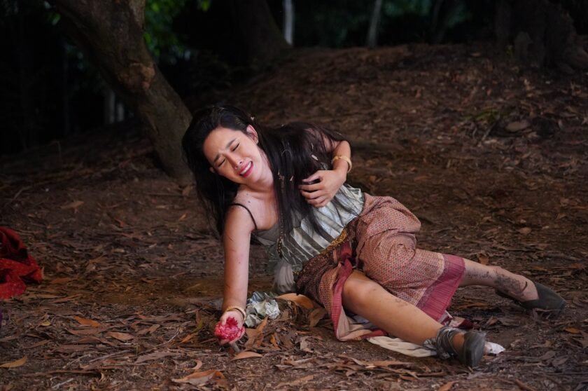 เป็นฉากที่ แพรทอง(เฌอเบลล์ ลัลณ์ลลิน)หนีตามหมื่นคีรี(อาร์ต พศุตม์) หลังถูกบังคับให้ออกเรือนกับ เพลิง(ปรัชญ์ ปรมิณ) เพลิงไล่ตามมาจนเจอและฆ่าหมื่นคีรีทิ้ง แพรทองเห็นดังนั้นจึงตัดสินใจฆ่าตัวตายตามหมื่นคีรีไป และร่างทั้งสองคนก็ถูกฝังอยู่ใต้ต้นตะเคียนด้วยกัน ผ่านมาหลายร้อยปี แพรทองไม่ได้ไปผุดไปเกิด แต่กลายเป็นแม่ย่าวังตะเคียน โดยสิ่งเดียวที่เธอเฝ้ารอคือการได้กลับมาพบกับหมื่นคีรีอีกครั้ง