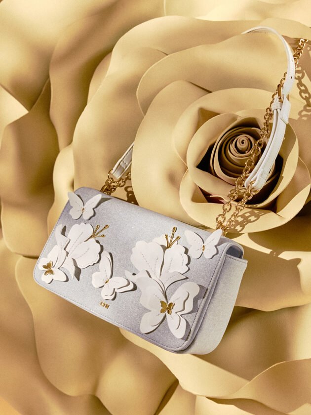 เริ่มกันที่ Jardin Papillon นำเสนอเรื่องราวที่ได้รับแรงบันดาลใจจากการค้นพบความงดงามของธรรมชาติและการใช้ชีวิตในฤดูร้อนอันเต็มไปด้วยอิสระและจินตนาการ คอลเลกชั่นนี้เริ่มต้นด้วยเอเลเมนต์ที่เป็นสัญลักษณ์แห่งความสง่างามและอ่อนหวานของผู้หญิง เช่นผีเสื้อและดอกไม้ที่ผลิบาน ซึ่งถูกจินตนาการออกมาเป็นงานคราฟต์ชิ้นใหญ่แบบสามมิติ สะท้อนถึงความละเอียดอ่อนและความสวยงามในทุกมุมมอง ก่อนถูกนำมาประดับประดาลงบนกระเป๋าหลากหลายดีไซน์ในตระกูล Papier ไม่ว่าจะเป็นแบบ Crossbody พับหน้าขนาดกะทัดรัดที่สามารถสะพายในวันไปเที่ยวเล่นได้อย่างคล่องตัว แบบ Handbag ขึ้นรูปพร้อมหูหิ้วคู่ที่ให้ความหรูหราทางการมากขึ้น และแบบ Shoulder ทรงครึ่งวงกลมพร้อมสายสะพายโซ่ที่ดูโมเดิร์นปนเก๋ ช่วยเพิ่มกิมมิคให้กับมินิเดรสสุดหรู ทั้งหมดสามารถแมตช์เข้ากับรองเท้าส้นสูงเปิดส้นแบบสวมรุ่น Laly ในเฉดสีไฮไลต์อย่างฟ้าอ่อนและเบจที่ถูกประดับด้วยหมุดรูปดอกไม้ชิ้นเล็ก ๆ ที่ให้ลุคหวานปนขี้เล่นในตัว