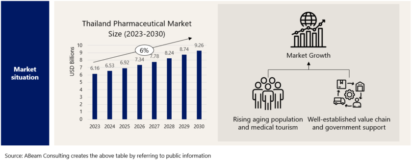 อุตสาหกรรมยาและสุขภาพของไทยกำลังเติบโตอย่างรวดเร็ว จากแรงสนับสนุนของนโยบายภาครัฐ ความต้องการด้านสุขภาพที่เพิ่มขึ้น และความก้าวหน้าทางเทคโนโลยีทางการแพทย์ อุตสาหกรรมด้านสุขภาพของไทยได้กลายเป็นหนึ่งในกลไกขับเคลื่อนเศรษฐกิจสำคัญ สร้างโอกาสทางธุรกิจให้แก่นักลงทุนทั้งในและต่างประเทศอย่างมีนัยสำคัญ ภาครัฐของไทยได้เดินหน้านโยบายเพื่อยกระดับการเข้าถึงบริการสุขภาพ ลดต้นทุนการรักษา และวางเป้าหมายให้ประเทศก้าวขึ้นเป็นศูนย์กลางทางการแพทย์ของภูมิภาคเอเชียตะวันออกเฉียงใต้ สอดคล้องกับแผนการพัฒนาโครงสร้างพื้นฐานในอุตสาหกรรมยาและการสุขภาพที่กำลังขยายตัวอย่างต่อเนื่อง ในรายงานจากเอบีม คอนซัลติ้งฯ ฉบับนี้ได้นำเสนอบทวิเคราะห์เชิงลึกเกี่ยวกับอุตสาหกรรมยาและสุขภาพ โดยเจาะปัจจัยขับเคลื่อนการเติบโตหลัก กลไกการสนับสนุนจากภาครัฐ โครงสร้างห่วงโซ่อุปทาน และแนวทางการเข้าสู่ตลาดของนักลงทุน โดยเฉพาะบทบาทของบริษัทรับจ้างทำการขายหรือตัวแทนจำหน่ายและกระจายสินค้า (Contract Sales Organizations – CSOs) ซึ่งกำลังกลายเป็นเครื่องมือสำคัญสำหรับธุรกิจที่ต้องการปักธงในอุตสาหกรรมที่มีศักยภาพสูงนี้