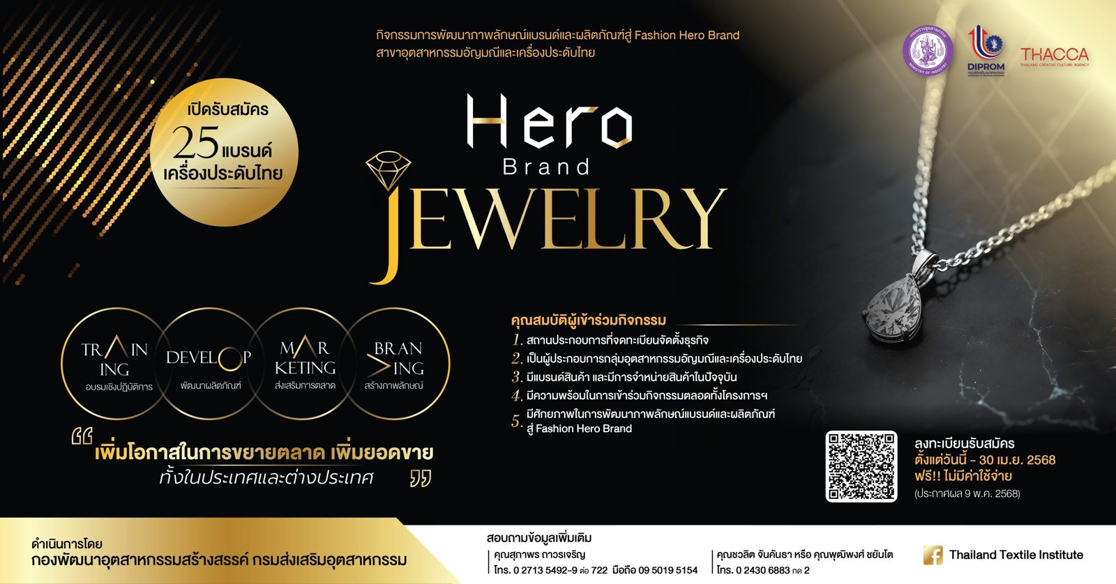 ร่วมเป็น Hero Brand แห่งวงการอัญมณีและเครื่องประดับไทยสมัครได้แล้วตั้งแต่วันนี้ – 30 เมษายน 2568 ฟรี! ไม่มีค่าใช้จ่ายรับจำกัดเพียง 25 แบรนด์เท่านั้น