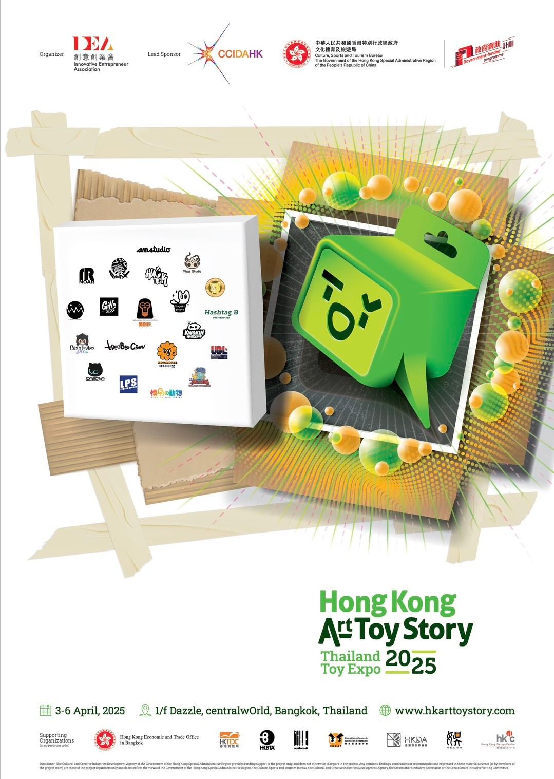 งาน “Hong Kong Art Toy Story” จัดต่อเนื่องเป็นปีที่ 3 ในประเทศไทย โดยสมาคมผู้ประกอบการนวัตกรรม (Innovative Entrepreneur Association – IEA) พร้อมการสนับสนุนหลักจากสำนักงานพัฒนาอุตสาหกรรมวัฒนธรรมและความคิดสร้างสรรค์ (Cultural and Creative Industries Development Agency – CCIDA) ซึ่งอยู่ภายใต้สำนักงานวัฒนธรรม กีฬา และการท่องเที่ยวของรัฐบาลฮ่องกง (Culture, Sports and Tourism Bureau, HKSAR Government)