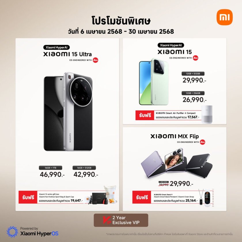 โปรโมชันพิเศษระหว่างวันที่ 6-30 เมษายน 2568 ที่ Xiaomi Store ที่ร่วมรายการทั่วประเทศ