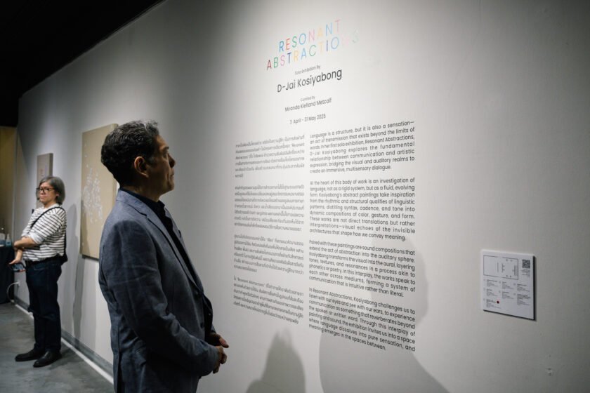 “Resonant Abstractions” นำเสนอชุดผลงานจิตรกรรมนามธรรมอันโดดเด่นพร้อมกับ “เสียง” ที่ก้าวข้ามขอบเขตศิลปะแบบเดิม แนวทางอันเป็นนวัตกรรมของศิลปินเปลี่ยนรูปแบบทางภาษา ให้กลายเป็นองค์ประกอบภาพที่มีพลวัตในขณะเดียวกันก็แปลงองค์ประกอบภาพเหล่านี้ให้เป็นประสบการณ์เสียงหลายชั้น เชิญชวนผู้เข้าชมให้ “ฟังด้วยตาและเห็นด้วยหู”