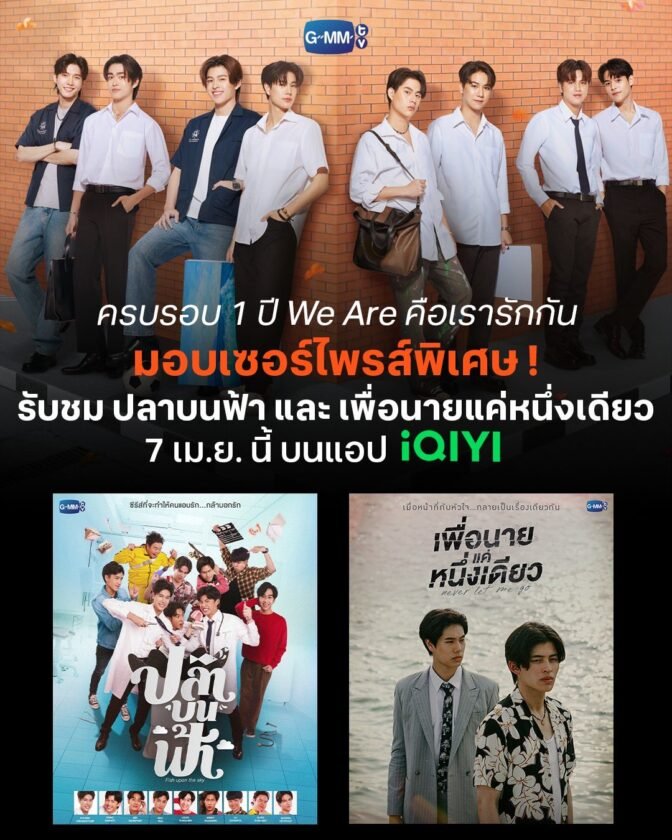 เริ่มด้วยฝั่งซีรีส์ BL ที่ฉลองครบรอบ 1 ปีของซีรีส์ที่ทุกด้อมรอคอย “We Are คือเรารักกัน” ที่งานนี้ขอเพิ่มความฟินต่อเนื่องด้วยสองผลงานชวนใจละลายของ “ปอนด์ ณราวิชญ์” และ “ภูวินทร์ ตั้งศักดิ์ยืน” กับซีรีส์แนวโรแมนติก – คอเมดี้ “ปลาบนฟ้า (Fish Upon the Sky)” ว่าด้วยภารกิจเปลี่ยนหนุ่มเนิร์ดให้กลายเป็นตัวจี๊ดเพื่อพิชิตใจคนที่แอบชอบ และ ซีรีส์แนวโรแมนติก – ดราม่า “เพื่อนายแค่หนึ่งเดียว (Never Let Me Go)” ที่ทั้งคู่ต้องเผชิญกับภารกิจหัวใจท่ามกลางอันตรายและความรักที่เดิมพันด้วยชีวิต