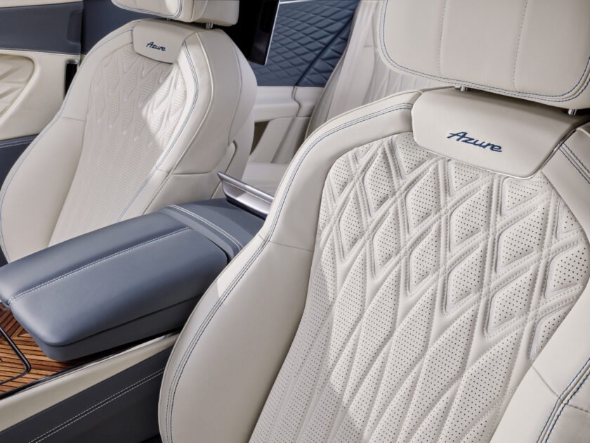 รุ่น Azure คือ อัครยนตรกรรมที่เน้นความสะดวกสบายในการขับขี่ด้วยเทคโนโลยีช่วยเหลือผู้ขับขี่เพื่อการเดินทางที่ราบรื่นและปลอดภัยยิ่งขึ้น ดังนั้น ทั้งเบาะโดยสารด้านหน้า 2 ที่นั่งและเบาะโดยสารด้านหลังอีก 2 ที่นั่งของ Flying Spur Azure จึงมาพร้อมเบาะโดยสารแบบ Wellness ที่ติดตั้งระบบปรับอุณหภูมิเบาะโดยสารและระบบระบายอากาศเพื่อรักษาอุณหภูมิที่เหมาะสมของร่างกายผู้โดยสารเพื่อความสบายและตื่นตัวตลอดการเดินทาง ฟังก์ชันเบาะนวดมีการตั้งค่าโปรแกรมถึง 6 แบบที่จะช่วยส่งเสริมการปรับท่านั่งอย่างต่อเนื่องเพื่อให้กล้ามเนื้อได้เคลื่อนไหวและช่วยลดความเมื่อยล้าในขณะเดินทาง