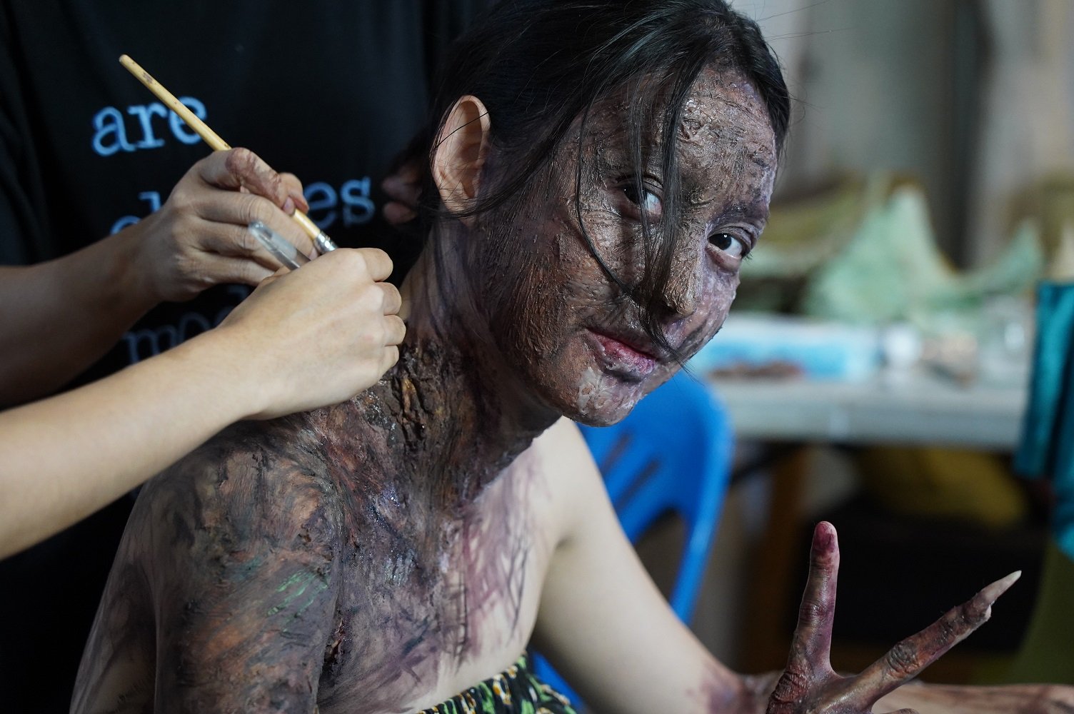 กลายเป็นภาพจำของละคร พิศวาสข้ามภพสถานีโทรทัศน์ช่อง 8 ในเครืออาร์เอสกรุ๊ป ไปแล้ว สำหรับ “แม่ย่าวังตะเคียน” รับบทโดย นางเอก “เฌอเบลล์ ลัลณ์ลลิน เตจะสาเวศซ์” บทจะดีก็ดีใจหาย บทจะหลอนก็น่ากลัวจนภาพติดตา เพราะไม่เพียงแต่สร้างความสะพรึงให้แฟนละครเท่านั้น แต่ยังเรียกเสียงฮือฮา เบื้องหลังการแต่งหน้าเอฟเฟกต์สุดสมจริง เพราะต้องอาศัยเทคนิคและความละเอียดทุกตารางนิ้วของผิวตั้งแต่หัวจรดเท้า งานนี้ เฌอเบลล์ ถึงขั้นบอกว่า ถึงจะเคยแต่งเอฟเฟกต์แนวนี้มาแล้ว แต่ก็ยังไม่ชินที่ต้องนอนนิ่งนานร่วม 4 ชั่วโมง หรือกว่าครึ่งวัน ดังนั้นเราจะมาดูว่า กว่าจะออกมาเป็นลุคสุดหลอนนี้ ต้องมีขั้นตอนไหนบ้าง
