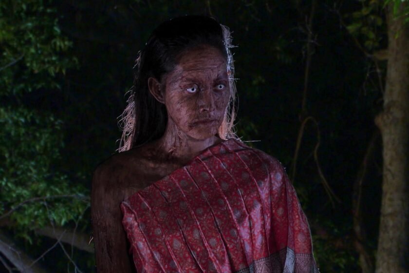 เริ่มจาก ปั้นใบหน้าใหม่ด้วยซิลิโคน ทีมเอฟเฟกต์เริ่มจากการหล่อหน้าด้วยแบบพิมพ์ซิลิโคนเพื่อสร้าง “รอยแผลผิวเน่า-พุพอง” ที่ดูสมจริง โดยเฉพาะรอยแตกที่เห็นบนหน้าผากและแก้ม ที่ดีไซน์ให้ออกมาเสมือนเป็นผิวของลำต้นตะเคียนซิลิโคนถูกติดทีละชิ้น พร้อมการเก็บขอบอย่างประณีตเพื่อให้เนียนกลืนกับผิวจริงหลังจากนั้น ลงสีผิวด้วยเทคนิค “Layering” ใช้การลงสีหลายชั้น ตั้งแต่โทนม่วงช้ำ, แดงสด, น้ำตาลไหม้ ไปจนถึงโทนดำที่ตัดเฉดให้ผิวดูเหมือนตายมานานหลายร้อยปี และคล้ายของสีของลำต้นไม้ตะเคียน โดยใช้พู่กันขนาดเล็กเพื่อเก็บรายละเอียดเส้นเลือดฝอย ซอกแผล และรอยปริที่เกิดจาก ความเจ็บปวดในอดีต และความแค้นเสริมสายตาหลอนด้วยคอนแทคเลนส์พิเศษ “ดวงตาวิญญาณ” โดยใช้เลนส์สีขาวขุ่นที่ออกแบบมาให้ดูเหมือนดวงตาที่ดับสูญไร้แววตา แต่ยังจับจ้องอย่างทรงพลัง ต้องใช้เวลานานในการใส่เป็นอย่างมาก เพราะขนาดค่อนข้างใหญ่ และนักแสดงต้องฝึกเคลื่อนไหวช้า ๆ เพื่อให้จังหวะของสายตาดูน่าขนลุกที่สุด พร้อมด้วยเส้นผมและเครื่องแต่งกายแบบพีเรียดผสมลี้ลับ วิกผมยาวสีดำที่เพิ่มให้ดูหนาขึ้น ขลับถูกจัดทรงให้พลิ้วไหวแบบธรรมชาติ แต่ก็ไม่เรียบเกินไป เพื่อสื่อถึงพลังงานบางอย่างที่เวลาปรากฏกายผมจะพริ้วด้วยแรงลม เสริมด้วยชุดไทยโบราณเนื้อผ้าแท้ แต่นำมาดัดแปลงให้ดู ตายซาก ด้วยการพ่นหมอกแป้ง สีฝุ่น และผ้าซ้อนที่มีรอยขาดจาง ๆ เพื่อให้แม้อยู่เฉย ๆ ก็ดูเหมือนลอยออกมาจากอีกภพ