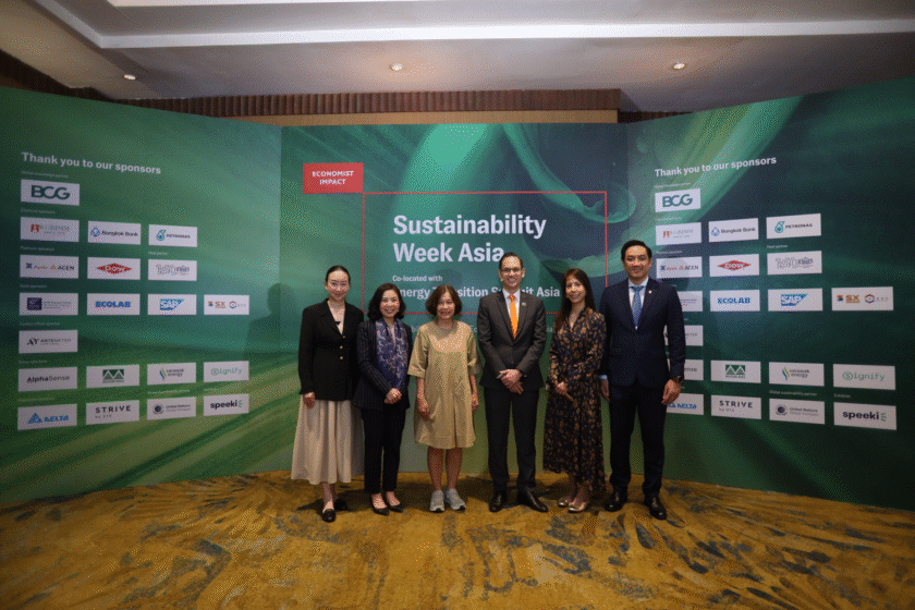 นายนพเดช กรรณสูต ประธานเจ้าหน้าที่บริหาร ธุรกิจในประเทศไทยและโซลูชั่นธุรกิจอุตสาหกรรม บริษัท บี.กริม เพาเวอร์จากัด (มหาชน) ร่วมเสวนาในงาน Sustainability Week Asia ครั้งที่ 4 จัดโดย Economist Impact ภายใต้ธีม From Idealism to Pragmatism รวบรวมผู้นำด้านความยั่งยืนจากทั่วโลกกว่า 1,000 คน ร่วมเจาะลึกถึงประเด็นสำคัญที่กำลังผลักดันการเปลี่ยนแปลงในภาคธุรกิจ ทั้งในเรื่องของการบรรลุเป้าหมายด้านการปล่อยก๊าซเรือนกระจกสุทธิเป็นศูนย์ (Net Zero) การเปลี่ยนผ่านทางพลังงานอย่างยั่งยืน การสร้างเศรษฐกิจหมุนเวียน และการบริหารทรัพยากรอย่างเท่าเทียม เพื่อขับเคลื่อนการเติบโตทางธุรกิจท่ามกลางความเปลี่ยนแปลงของโลกยุคใหม่ เมื่อวันที่ 25-26 มีนาคม 2568 ณ โรงแรม ดิ แอทธินี โฮเทล แบงค็อก